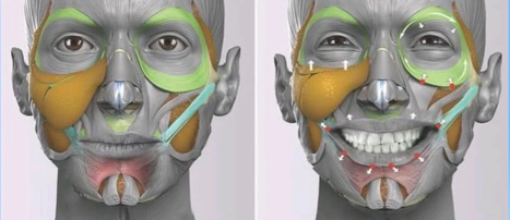 當(dāng)顴皮韌帶緊張+面中部肌肉力量過(guò)強(qiáng)時(shí),中部肌肉力量過(guò)強(qiáng)時(shí),在做表情大笑時(shí)會(huì)加重出現(xiàn)。