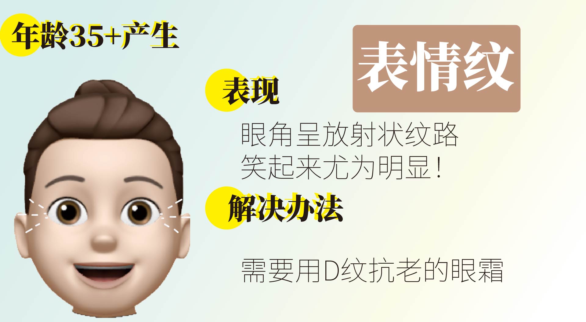 表現(xiàn):眼角呈放射狀紋路,笑起來尤為明顯!