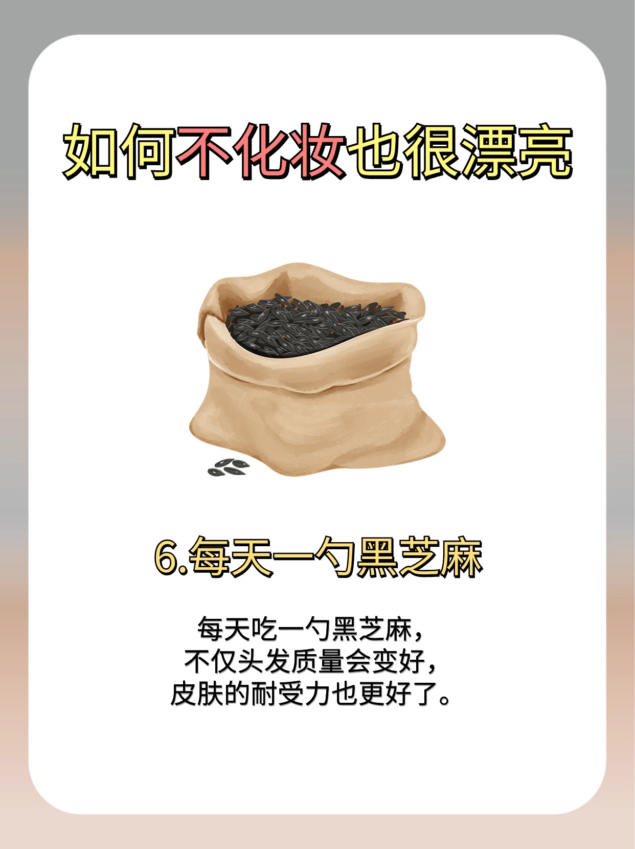 每天吃一勺黑芝麻,不僅頭發(fā)質(zhì)量會(huì)變好,皮膚的耐受力也更好了。